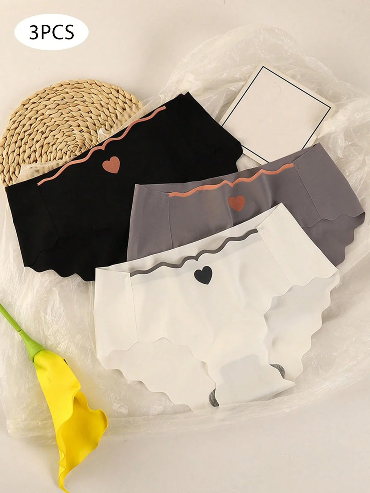 Inform when this item available 3pcs Women's Sweet Ice Silk Seamless Heart Shaped Trim Breathable Triangle Underwear