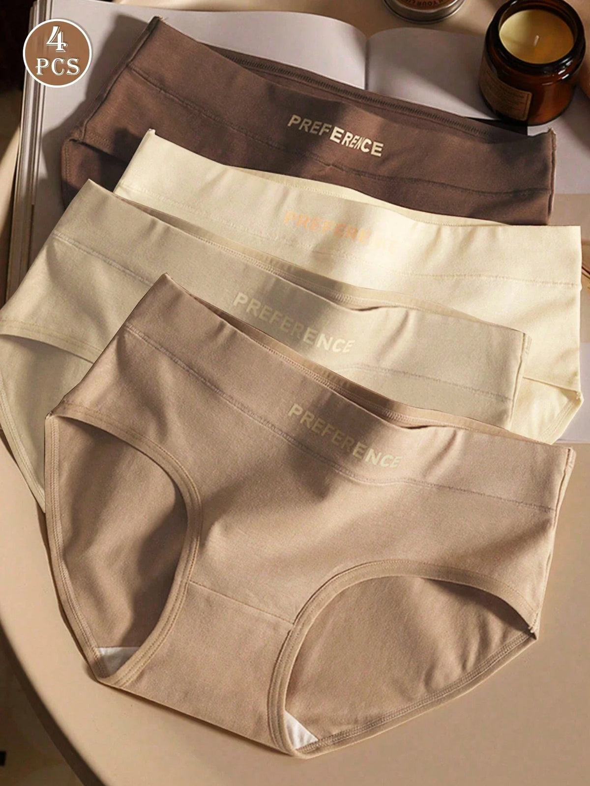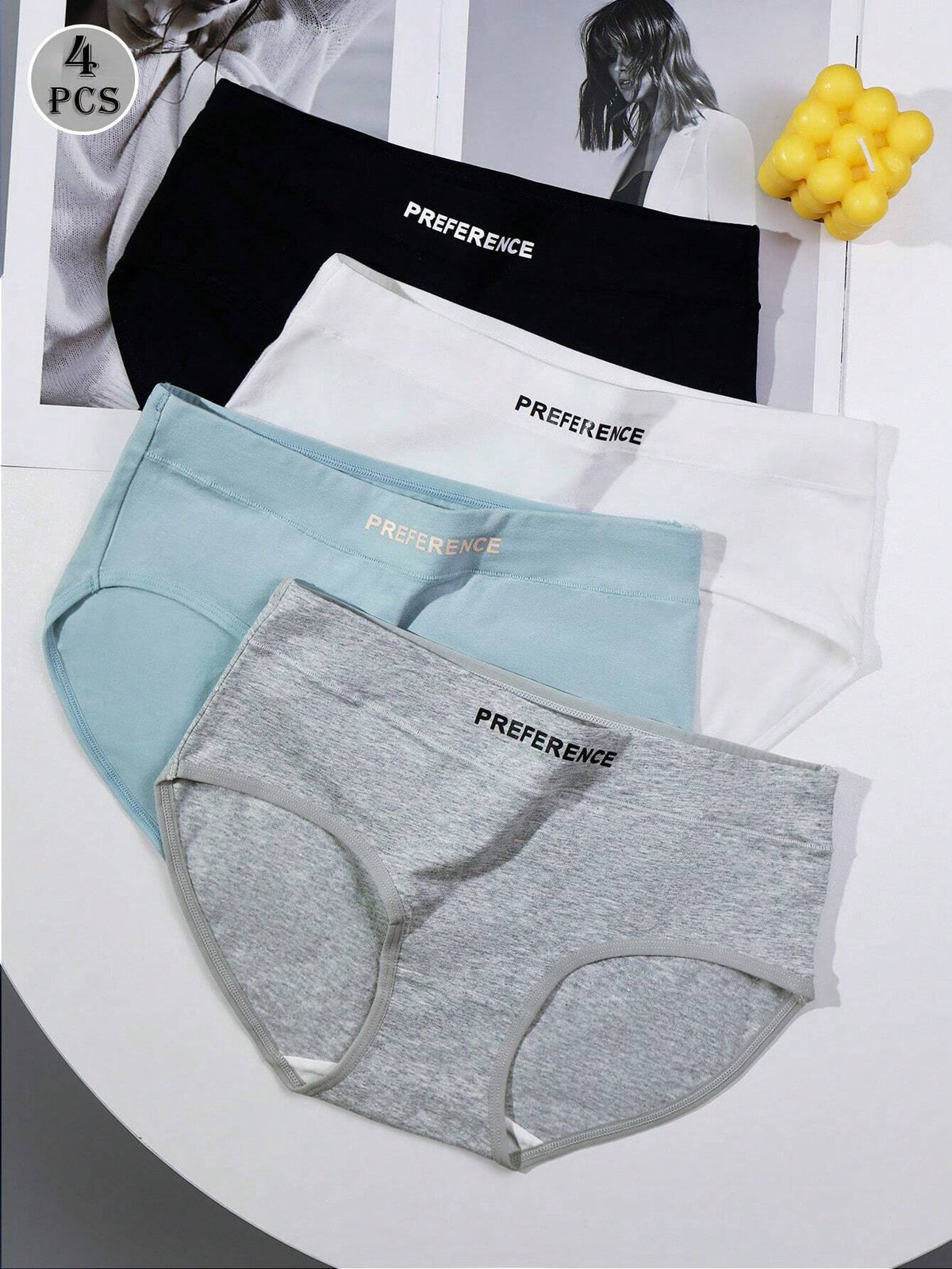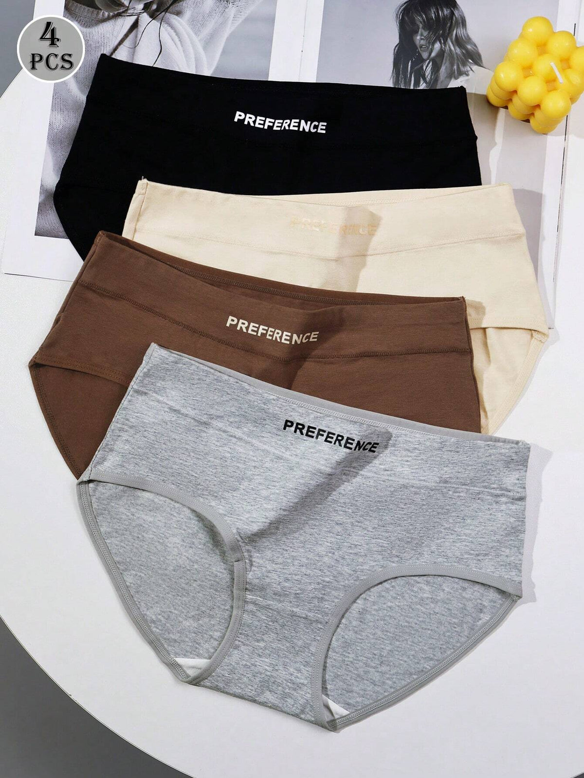 Inform when this item available 4pcs Women's Solid Color Seamless Breathable Soft Athletic Triangle Underwear With MELRAD Letter Print