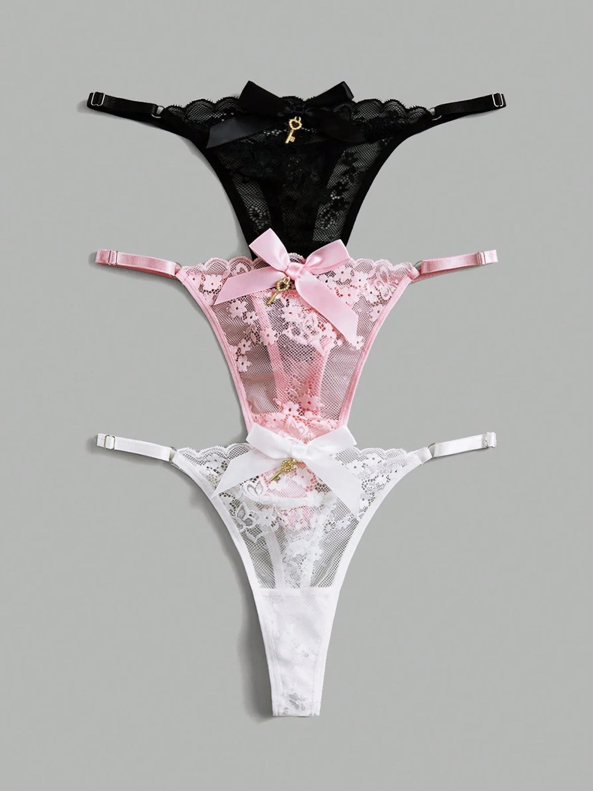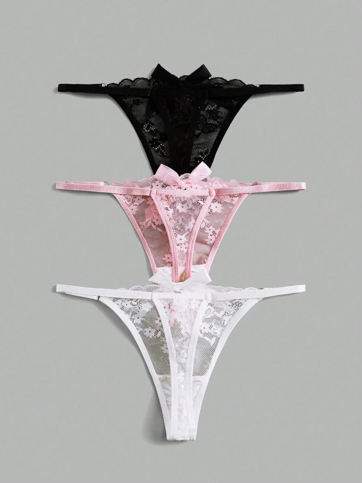 Inform when this item available ROMWE Kawaii 3pack Floral Lace Bow Decor Thong