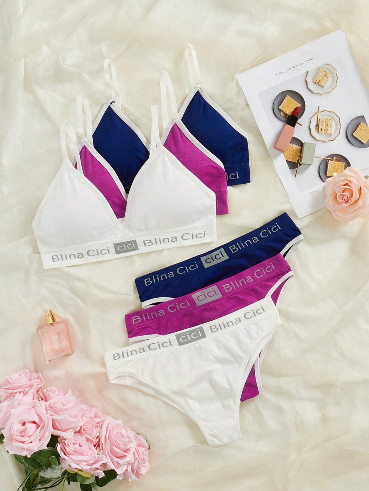 3 Sets Women Letter Print Bra And Underwear Set Sports